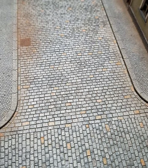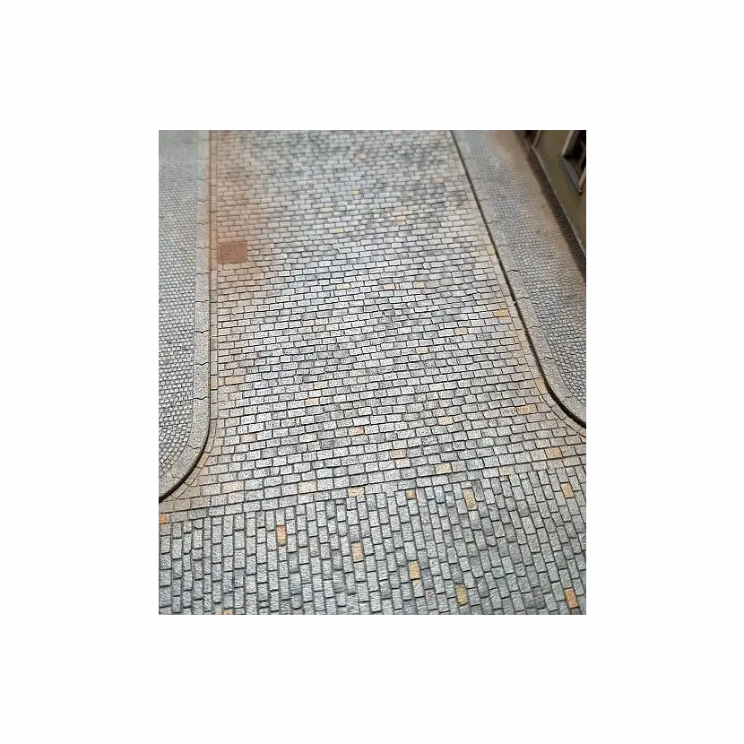 Křižovatka ve tvaru T s realistickým vzorem kočičích hlav. Díky přesnému laserovému gravírování navazuje na rovné a obloukové silnice Model Scene. Rohové části přesně odpovídají chodníkům, a umožňují tak snadné sestavení městské uliční sítě. Křižovatka ve tvaru T s realistickým vzorem kočičích hlav je součástí modulárního systému kartonových silnic Model Scene. Díky přesnému laserovému gravírování navazuje na rovné i obloukové díly a umožňuje sestavit funkční dopravní uzel v měřítku H0. Obsah balení: Aršík obsahuje 8 kusů T-dílů. Vystačí na 8 samostatných odboček nebo 4 křižovatky ve tvaru kříže.