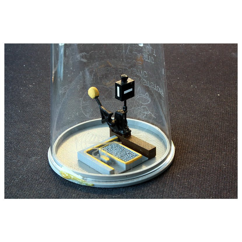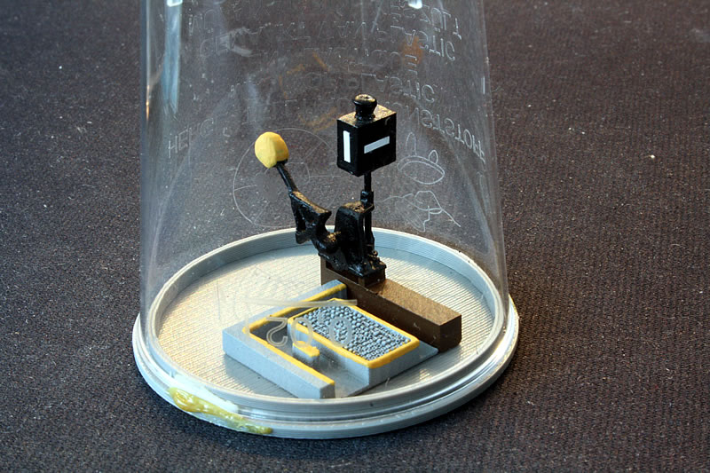 Imitace výhybkového návěstidla s mechanickým přestavníkem.