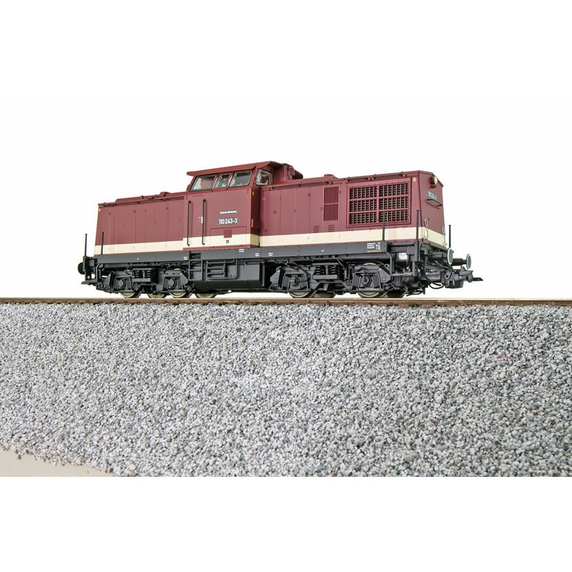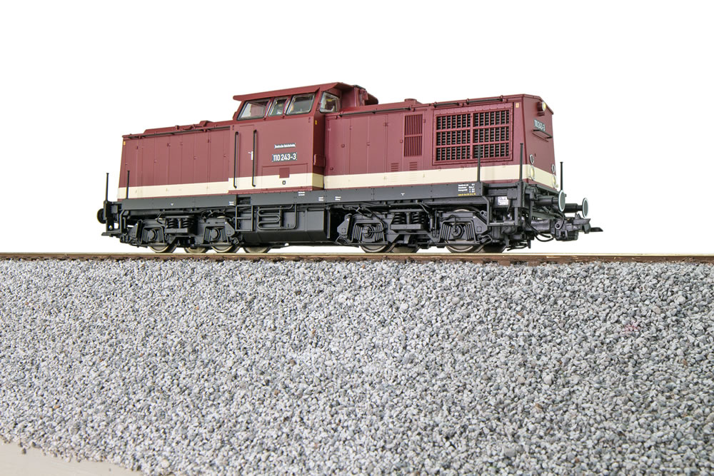 Motorová lokomotiva BR110 243 DR Ep IV. Model je vybavený zvukovým dekodérem a dynamickým kouřovým generátorem.