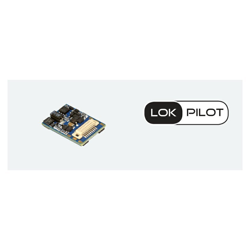 Funkční dekodér LokPilot 5 Fx micro. Připojení Next18. Multiprotokol DCC/MM/SX. Pro měřítka N, TT a H0. 14 a 128 jízních stupňů. RailCom. ABC. 6 funkčních výstupů a 2 logické. Rozměry 13x9mm.