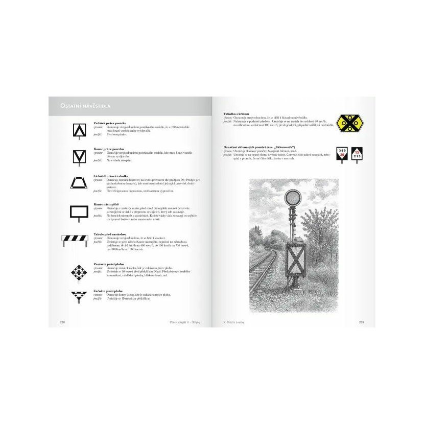 – kapitola o drážních značkách a tabulkách, které dodávají kolejištím realističnost,