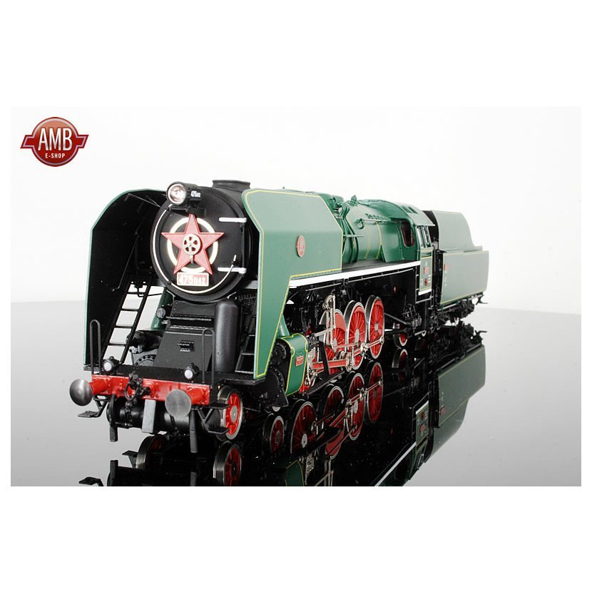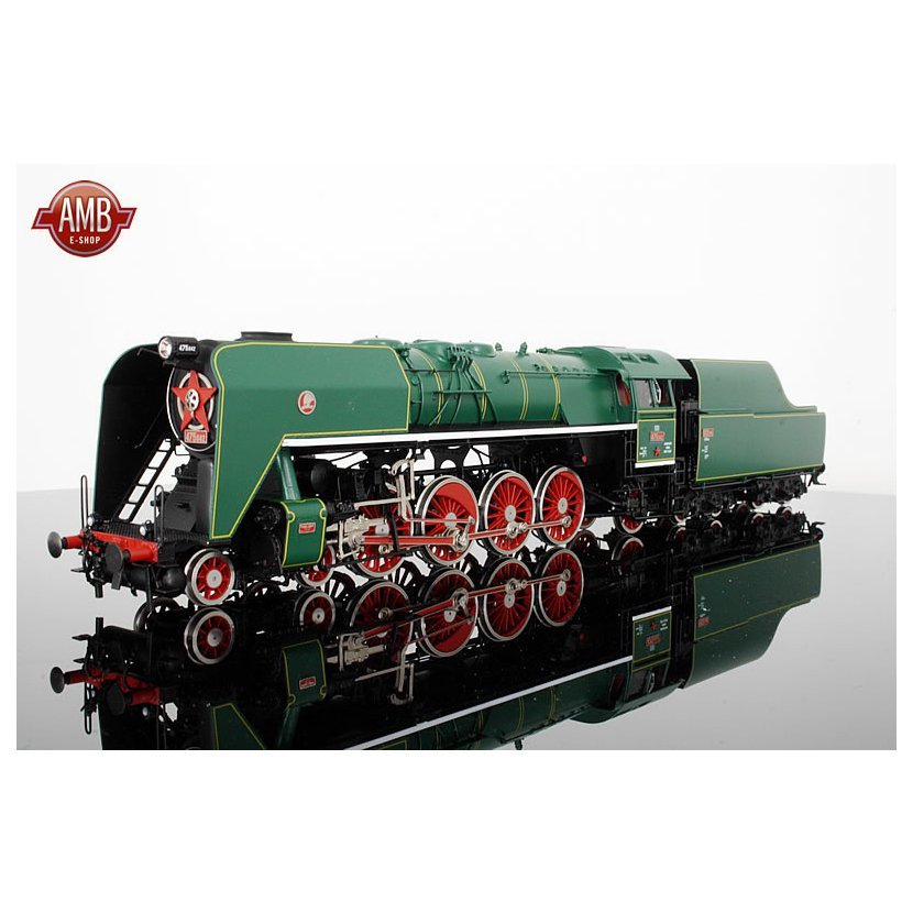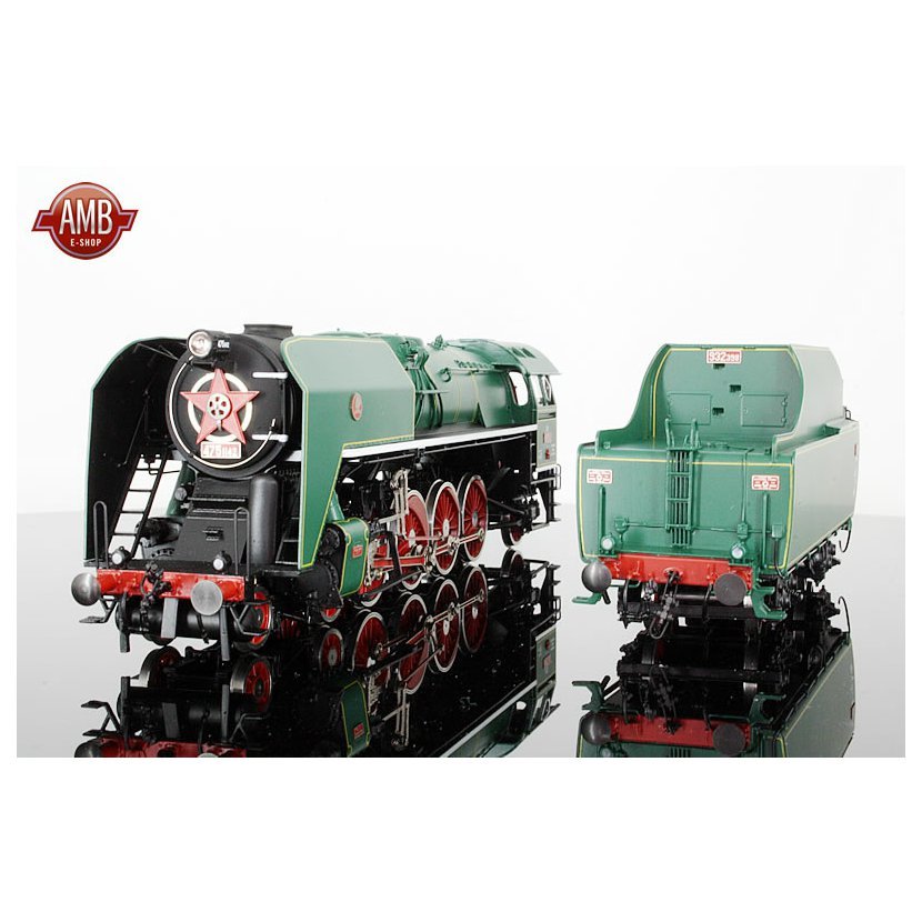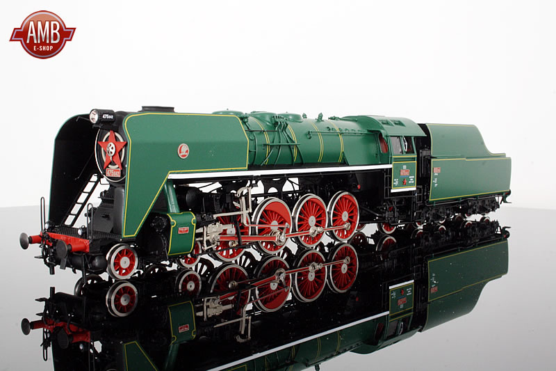 Parní lokomotiva 475.1142 ČSD. III. Ep. 1955. Výrobce: Škoda, výr. č. 2665/1951. Kylchap. Nátěr: zelený se žlutými linkami, červená kola. Plzeňská dráha. Depo: Plzeň. Lokomotiva bude mít na dýmničních dveřích hvězdu stejné velikosti jako 475.185. 50 kusová série.