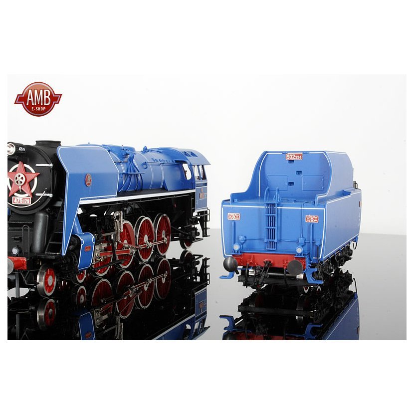 Parní lokomotiva 475.175 ČSD. IV. Ep. 1980. Výrobce: Škoda, výr. č. 1901/1948. Kylchap. Nátěr: modrý s bílými linkami, červená kola. Depo: Děčín. Lokomotiva nebude mít bílá madla, orámování nárazníků, víka ložiskových domků tendru, obruče náprav předního běžného podvozku, okraje uhláku. Lampy budou celočerného provedení. Bílé linkování bude ekvivalentní ke žlutému u stroje 475.1142. 30 kusová série.