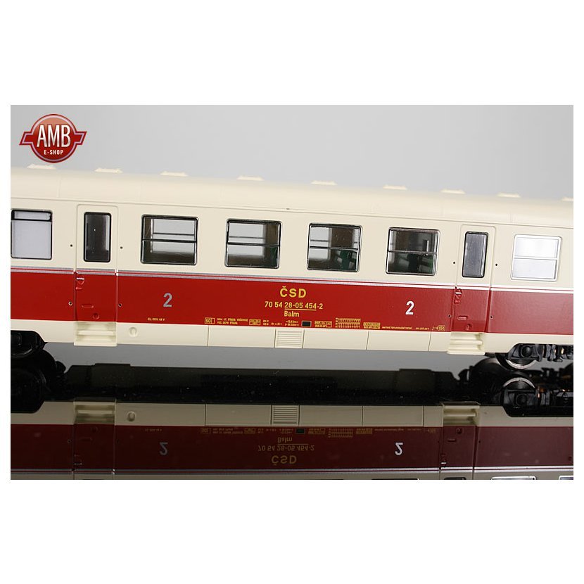 Osobní vůz Balm ČSD. Včetně osvětlení interieru a koncového osvětlení. Osvětlení funguje v DCC i analogu. V DCC F1 zapíná koncové a F5 interier.