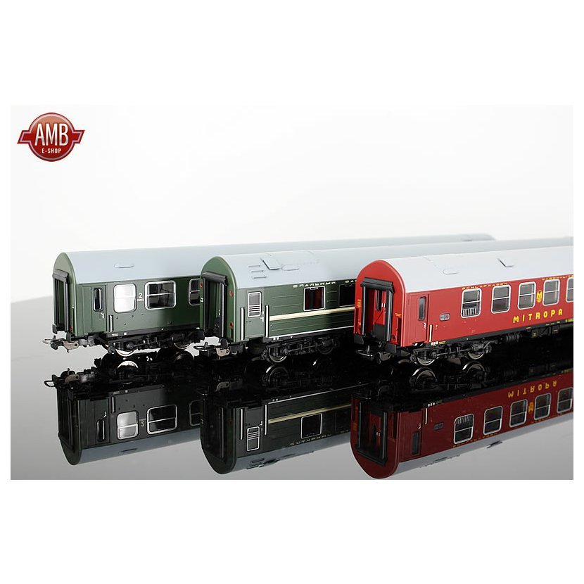 Set tří osobních vozů D 244 Brest Köln #2 DR/SZD. Bme + WLABme + WLABm.